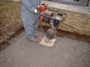 タンピングランマを使用し、地盤全体を締固めます。