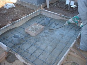 基礎コンクリートの打設作業。