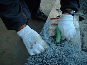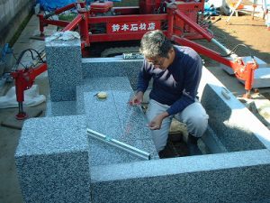 石材と石材との結合部には弾性接着剤を使用してあります。(地震などの揺れからお墓を守ります。)