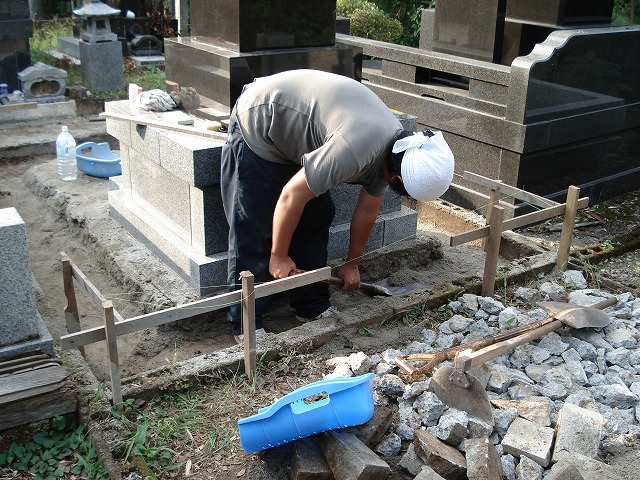 お墓の工事で大事な部分は完成してからは目で見えなくなってしまいます。きちんと工事を行っていることをお知らせするために、私ども鈴木石材店では工事中の写真を逐一撮って、工程報告書をお客様にお送りしています。