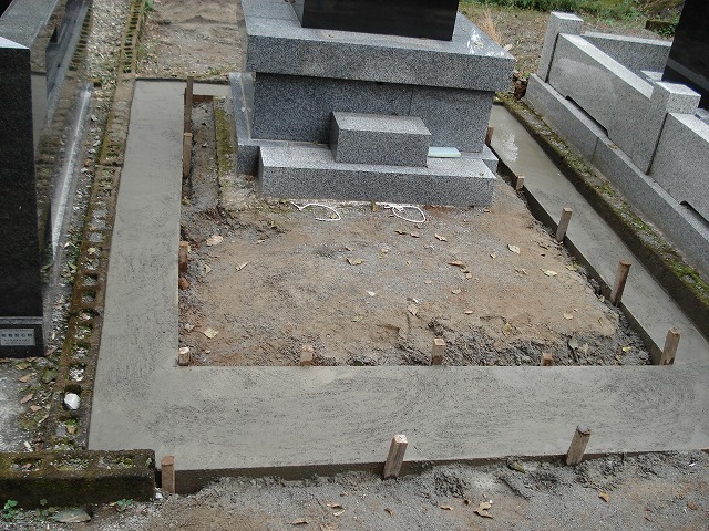 基礎コンクリートの完成です。しっかりと養生をして基礎の強度が十分出てから石材を据付けます。