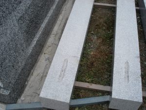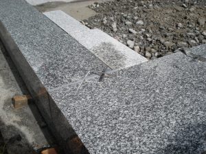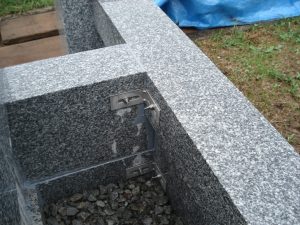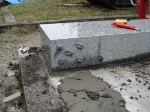 いよいよ石材の据え付けですが、石材の底部分にはモルタルが良く絡むように加工を施しています。