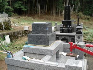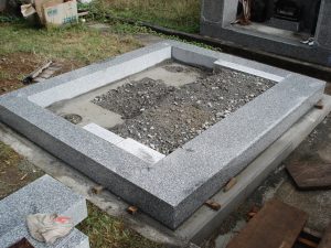 芝台をのせて、石碑本体をのせる準備が整いました。