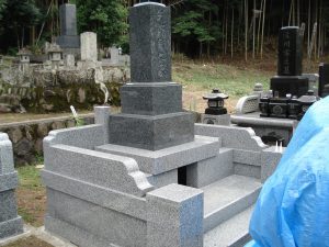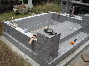 敷き砂利や墓誌、花立、香炉を置きすべて完成です。