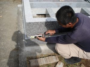 目地部分はマスキングテープで養生をして石材専用コーキング材で目地をします。