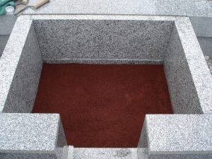 納骨室の底部には魔除けの意味がある赤土を敷き詰めてあります。