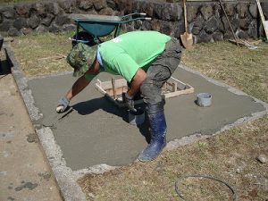 生コンクリートを流し入れて、丁寧にコテでならしていきます。