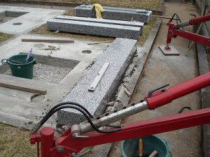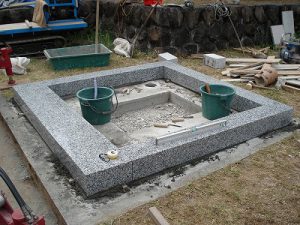 いよいよ石材を据え付けるわけですが、底部にはモルタルが良く絡むように加工してあります。
