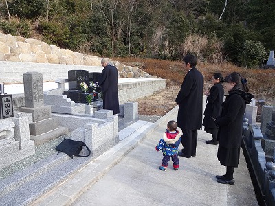 パソコンで形や石の色の組み合わせなど説明していただき、冬の寒い中、主人の命日までと言う私の希望がかない1月11日に無事納骨することが出来ました。本当にありがとうございます。